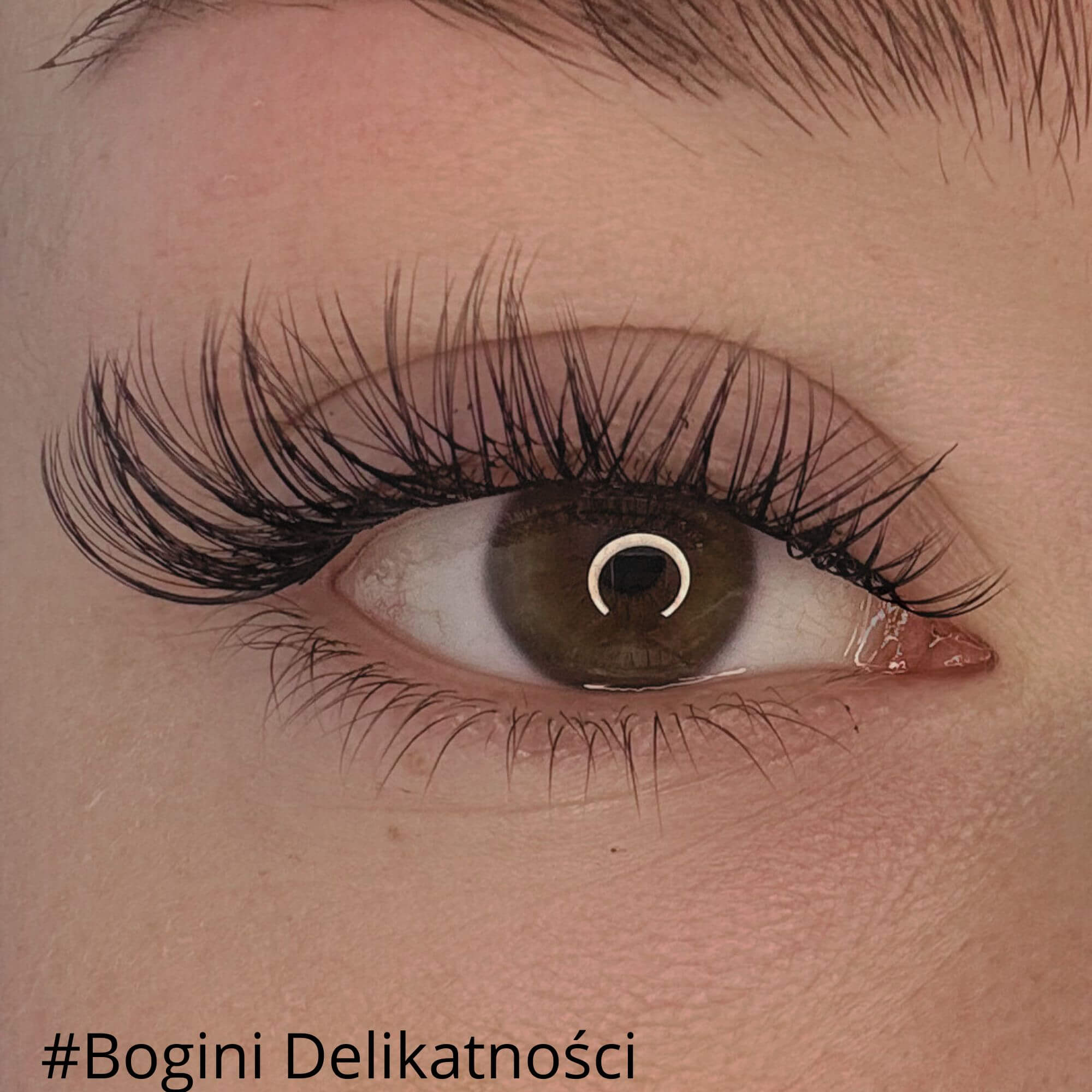 Rzęsy inspirowane efektem soft volume, które zamiast tworzyć prostą, jednolitą linię – układają się w trzy subtelne mini-wachlarze na pasku. To idealny wybór dla osób, które lubią wyraziste spojrzenie, jednak chcą, aby rzęsy wyglądały bardziej naturalnie, lekko „roztańczone” i przypominające miękką objętość znaną z salonowych stylizacji – bez ciężkości klasycznego volume.