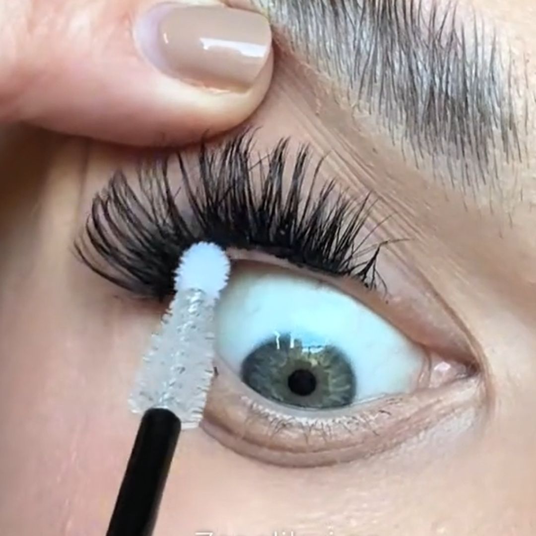 Nałóż Sealer u nasady kępek. Usuwa on lepkość i zabezpiecza rzęsy, aby utrzymały się dłużej.